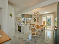 В квартире есть просторная кухня с обеденной зоной, тремя спальнями, тремя ванными комнатами, гардеробной, просторной гостиной и двумя террасами с потрясающим видом на море и горы.