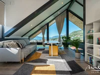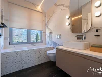 - На верхнем этаже находится офисное помещение, из которого можно попасть в главную спальню (с видом на море и Ловчен) и в главную ванную комнату с ванной и душем.