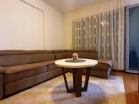 Планировка квартиры: прихожая, гостиная, совмещенная с кухней и столовой, спальня, ванная комната и большая терраса. Квартира полностью меблирована и оборудована. В квартире установлена сплит-система кондиционирования, а также норвежский радиатор в спальне. Из каждой комнаты есть выход на террасу с видом на город.