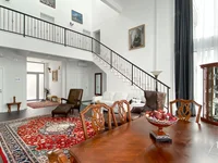Отличительной особенностью индивидуального проекта первого этажа является гостиная зона с потолками 8 м и панорамными окнами во всю высоту, а также эксклюзивные дизайнерские решения организации интерьера.