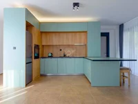 Квартира состоит из: кухни, большой гостиной, обеденной зоны, трех спален, двух ванных комнат и террасы с видом на море.