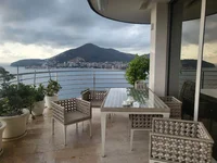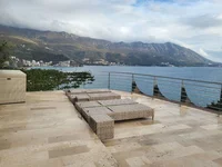 Продажа Бечичи № 2573. Продается пентхаус с 4 спальнями 550м2. Красивый вид с панорамного окна на весь город, море и горы. Новая итальянская мебель. Кухня 85м2. На первом этаже находится 4 спальни, 4 санузла, кухня. На втором этаже находится джакузи и красивый вид на всю Будву.