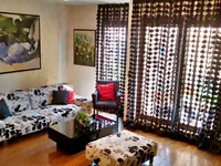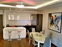 Продажа Будва № 2633. 125 квадратных метров, в двух уровнях, верхний на втором этаже 75 квадратных метров и на первом этаже 50 квадратных метров. Есть две террасы, на обеих установлены навесы. Во всех комнатах установлено 4 телевизора. В обеих ванных комнатах полы с подогревом, в верхней установлена ванна с массажерами, а в нижней – душевая кабина. . Квартира продается с мебелью, кроме картин и музыкального оборудования.