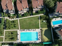 With the purchase of the house, the owner enjoys free use of a parking space for a car, a private garden in front of the house surrounded by greenery, a swimming pool measuring 25x15 m, a universal sports court (football, volleyball, badminton), and a children’s playground.