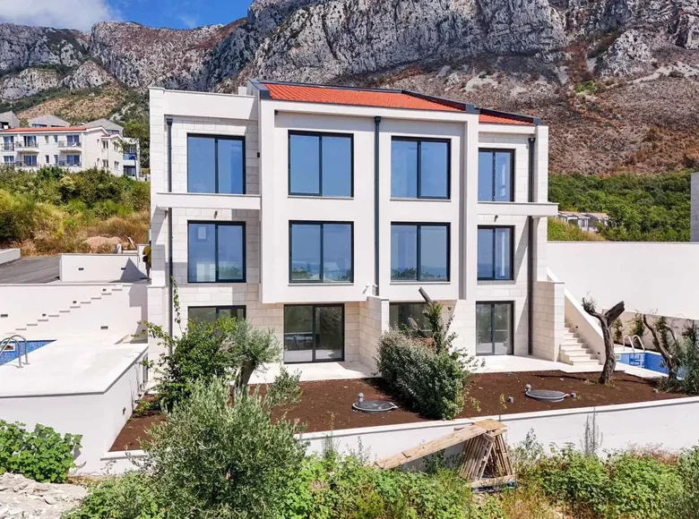 Новый роскошный полуотдельный дом с бассейном и потрясающим видом на Адриатическое море на продажу, расположенный в Режевичи, одной из самых красивых частей Будванской Ривьеры.