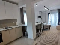 Квартира полностью укомплектована мебелью, изготовленной на заказ, и высококачественной бытовой техникой.