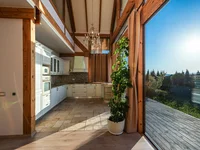 Элегантная резиденция площадью 230 м² с каркасом из сибирской лиственницы и современными стеклянными элементами, сочетающая в себе устойчивый дизайн с практичным комфортом. Продуманная планировка включает большую кухню, просторную гостиную, 3 спальни и 3 ванные комнаты с подогреваемыми полами. Энергоэффективная конструкция дома обеспечивает тепло в зимние месяцы, одновременно снижая воздействие на окружающую среду. Расположенный на участке площадью 150 м², этот объект недвижимости предлагает живописные виды с обоих этажей. Интерьер обставлен качественной итальянской мебелью и включает в себя гибкое пространство гардеробной, которое при необходимости можно переоборудовать в дополнительную спальню или домашний офис. Ландшафтный сад оснащен автоматической системой полива для легкого ухода.Особенности: