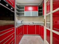 В кухне большой холодильник, индукционная плита и духовка , СВЧ печь.