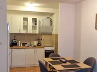Квартира на 7 этаже (не последний) в качественно построенном здании. Квартира площадью 76м2, плюс подвал 3м2. Структура квартиры: 2 спальни, гостиная с выделенной зоной кухни, просторная застекленная терраса с видом на горы, полноценная ванная комната, дополнительный санузел, прихожая. Квартира обставленна качественной мебелью и техникой. Во дворе всегда есть место для парковки автомобиля. Вблизи: школа Югославия, рынок, супермаркеты, аптеки. До моря 20 минут пешком. Квартира легализованная.