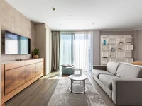 Просторная планировка – яркая гостиная в сочетании с кухонной зоной, уютной спальней и современной ванной комнатой.