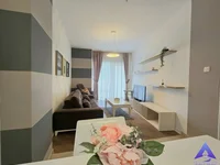 Квартира находится на 12 этаже и предлагает панорамный вид на город и зелёные окрестности, создавая ощущение простора и уюта. Площадь – 63 м², в ней уютная гостиная, одна спальня, отдельная комната (вторая спальня или кабинет), современная ванная комната и большая терраса — идеальное место для отдыха под черногорским солнцем.