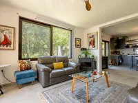 Дом расположен на участке земли площадью 411 м2 с садом площадью 336 м2, двумя складскими помещениями в подвале, гаражом и парковочным местом.