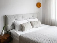 Спальня-мастер – итальянская кровать с подъемным хранилищем, просторным гардеробом.