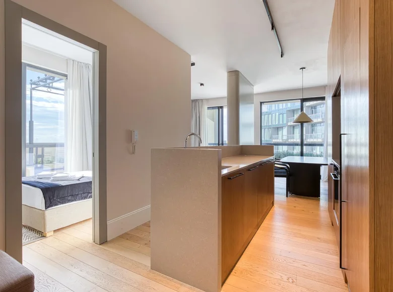 Квартира находится на восьмом этаже современного жилого комплекса с бассейном, идеально подходящим для отдыха в жаркие летние дни.