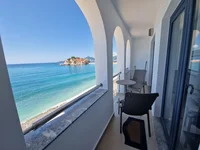 Квартира находится на первой линии от моря, всего в нескольких шагах от пляжа, и предлагает захватывающий вид на Адриатику и знаменитый остров-отель Свети-Стефан.