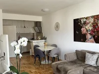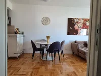 Полностью меблированная квартира площадью 49 м2 в жилом комплексе Trudbenik вблизи парка Ljubović. В квартире: 1 спальня, гостиная с кухней, санузел и терраса. Квартира расположена на 5 этаже и выходит на юго-запад (солнце после полудня до заката). В квартире есть кондиционер, кабельное телевидение (2 телевизора) и интернет. Рядом с домом свободная общая парковка.