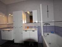 Предлагается квартира, площадью 105 кв.м, расположенная на первом этаже. Планировка квартиры: - две спальные комнаты; - просторная гостиная и кухня; - две ванные комнаты; - гостевой санузел; - просторную террасу. В квартире выполнена дизайнерская отделка: венецианская штукатурка на стенах, дизайнерский потолок с индивидуальным освещением, выкладка стены гостиной натуральным камнем. Панорамные окна из натурального дерева (с внутренней стороны) и алюминия (с внешней стороны), паркет в спальных комнатах, итальянская керамическая плитка. Квартира адаптирована для возможности пребывания в любое время года: подключена система "умный дом" с возможностью управления через интернет (регулировка теплого пола, жалюзей и пр.). Установлена итальянская сантехника и мебель для ванных комнат. Квартира полностью меблирована