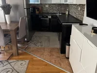 Продается 2комнатная квартира в районе Илино, город Бар. Этот тихий район находится в пешей доступности от моря, магазинов, школы. Квартира состоит из гостиной, совмещенной с кухней, а также двух спален, ванной комнаты и двух террас. Благодаря площади квартиры 67 кв м и удачной планировке, эта квартира может стать уютным домом для большой семьи. Еще одно удобство - застекленная терраса с великолепным видом на горы. В квартире качественная мебель и техника. В каждой комнате - радиатор и кондиционер. В гостиной - теплый пол, что является отличным решением для обогрева помещения зимой. Документы без ограничений и обременений. Быстрый выходу на сделку.