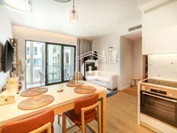 Удобства: Новый жилой комплекс ПРЕМИУМ класса. На территории жилого комплекса имеется зона отдыха: открытый бассейн и зона с лежаками и солнечными зонтами. На нижнем этаже магазины премиальных брендов. В квартире удобная планировка. БОКОВОЙ ВИД НА МОРЕ. Изысканный интерьер с органично встроенной дорогой мебелью и техникой. Качественный ремонт из дорогих материалов. Натуральные полы. Сплит-система, бойлер. Плитка и сантехника от известных мировых производителей. Бассейн на территории комплекса. Закрытая и охраняемая территорий. Видеонаблюдение. Управляющая компания.