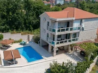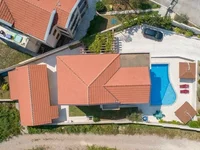 На территории есть ,бассейн, лаундж зона, зона барбекю, а также небольшой гостевой дом, общей площадью 60м2, планировка которого располагает гостиной, столовой зонами, кухней и ванной комнатой. Расстояние до центра Тивата и Порто Монтенегро составляет 2км.