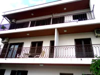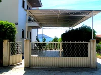 Дом имеет три этажа. На первом этаже расположен двухкомнатный апартамент 32 кв.м , хоз. блок и огромная терраса с видом в сад. На втором этаже расположены: один двухкомнатный апартамент и один трехкомнатный апартамент, большой балкон с прекрасным видом на море. На третьем этаже расположена четырехкомнатная квартира с двумя санузлами и большим балконом . Из гостиной и двух из спален есть выход на балкон с фантастическим видом на море и пляж. На участке растут апельсины, мандарины, лимоны, виноград, цветы. Обустроена парковка для одного автомобиля. Есть запасной резервуар для воды на случай отключения воды.