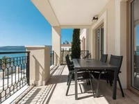 This one-bedroom apartment for sale is located in Tivat, in the modern residential building “Ksenija” in Porto Montenegro. Porto Montenegro combines a spectacular lifestyle destination with a world-class, full-service marina and luxury residential village offering premium real estate for sale and rental in this part of the Mediterranean. Thanks to the Porto Montenegro residential area and marina, Tivat is a prime location to reside in year-round, and the center of nightlife and important events.This one-bedroom apartment of 77m² is on the second floor of the building “Ksenija”. It consists of a living room with a dining area and a kitchen, one bedroom, a bathroom and toilet, a hallway, and a terrace.The apartment is for sale fully furnished. It is equipped in a simple modern style, with all the necessary appliances and central air conditioning. Probably the most beautiful part of this apartment is the big terrace. The terrace offers an enchanting view of the Tivat part of the Boka Bay and the courtyard of the building, all in greenery and with a magnificent infinity pool available to the apartment owners. Given the Mediterranean climate that prevails in Tivat, you can enjoy this view all year round by hanging out there with family and friends.Settled in a peaceful and quiet neighborhood, close to the sea, and in the nearby vicinity of all necessary amenities (ATM, pharmacy, hairdresser, day spa, grocery shop) this apartment offers great rental potential and is an excellent investment opportunity. The boulevards of the Porto Montenegro marina village bring open-air waterfront shopping designed to create an intimate and cosmopolitan environment, ideal for a relaxing evening stroll with leisurely shopping and fine dining opportunities.Porto Montenegro marina village is located at the heart of town, only 3km away from the international airport Tivat. From your apartment to the Old Town Kotor which is under UNESCO protection is less than 12km. The capital of Montenegro and airport Podgorica are only 85km away.We believe that this modern apartment in the luxury Porto Montenegro marina village won’t be long on the market, so if you like it, feel free to contact us for more information.