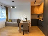 Новый жилой комплекс. Удобная планировка. Качественный ремонт. Стильный интерьер. Натуральные полы. Качественная входная дверь. Плитка, сантехника. Мебель и техника. Полностью оборудованная кухонная зона. Видеодомофон. Сплит-система, электрический бойлер. Лифт. Управляющая компания.