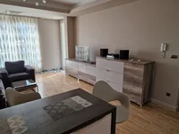 - прихожая, гостиная с кухней и обеденной зоной, санузел с душевой кабиной и туалетом, одна спальня, терраса