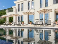 This wonderful villa has its own terrace and a pool, a hot tub, a sauna and a gym. The beautiful estate is tucked in nature, with wonderful views towards the sea and hills. The privacy of the estate is highlighted - the villa has a private entrance and parking.