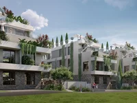 Each building in the complex includes 5 apartments: the ground floor features one- and two-bedroom units, the first floor also has one- and two-bedroom apartments, while the third floor hosts a spacious penthouse with a private rooftop terrace. The architecture is modern and harmoniously blends into the Mediterranean landscape. Natural materials are used in the finishing, and the complex territory is adorned with olive trees and ornamental plants, creating a pleasant atmosphere of privacy and tranquility.