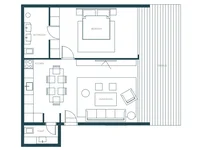 3rd floor apartment 1: living room with kitchen and dining table, a bedroom, a bathroom and a terrace.