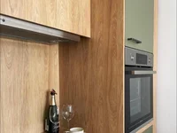 Планировка квартиры: гостиная в сочетании с кухней и столовой, спальня, ванная комната и большой балкон. Квартиры полностью меблированы и оборудованы. Апартаменты имеют панорамные окна. Можно выйти на балкон из гостиной. В зависимости от того, находятся ли апартаменты на первом или втором этаже, с них открывается вид на дворы комплекса или панорамный вид на море.