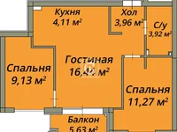 Структура квартиры: Кухня-гостиная, 2 спальни, прихожая, терраса.