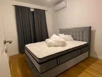 -зона кухни (большой холодильник, посудомоечная машина, духовой шкаф, варочная поверхность, вытяжка, посуда), -спальня с выходом на балкон (двуспальная хорошая кровать, шкаф, тумбочка, кондиционер),