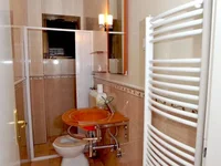 Главная ванная комната находится на первом этаже и имеет душевую кабину с массажными струями, туалетом и раковиной. Он идеально подходит для быстрого душа после дня на пляже. Вторая ванная комната находится на втором этаже и оборудована джакузи, туалетом, раковиной. Все полотенца, шампуни и другие аксессуары включены.