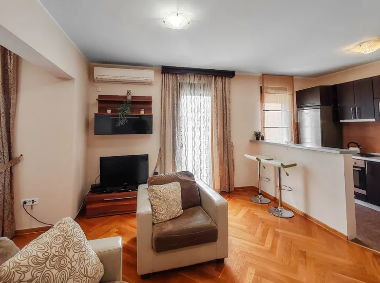 Светлая и просторная квартира с видом на город и море, расположенная на четвёртом этаже в тихом районе Будвы. Расстояние до центра города составляет всего 400 метров.