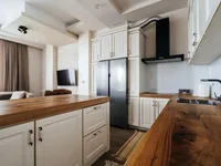 Квартира полностью оборудована и готова к проживанию. Планировка продумана для комфортной жизни: просторная гостиная с обеденной зоной и кухней, две спальни с собственными ванными комнатами, гостевой санузел, прихожая и терраса с видом на море и город.