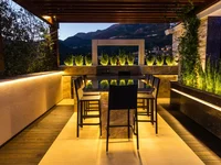 The apartment consists of a living room, kitchen, and dining room with panoramic views from all living areas. There are two bedrooms, a guest room, two bathrooms, and one toilet. In addition, the rooftop terrace includes a lounging area, barbeque/kitchen space, a hot tub, tv, and much more. From here, in Boreti, Bečići, you can see the whole bay making this a very attractive luxury apartment for sale currently.