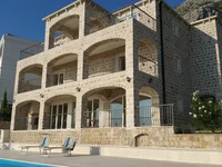 Stone facade embellishes the exterior of the villa.