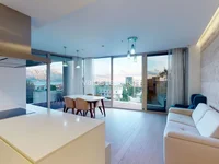 The apartment features two bedrooms and two bathrooms and open-plan living areas. Furthermore, these areas well connect to the 25m2 terrace which benefits from both mountain and sea views. The apartment comes fully furnished to a very high standard. The new owners can move in immediately. The apartment comes with a garage space.