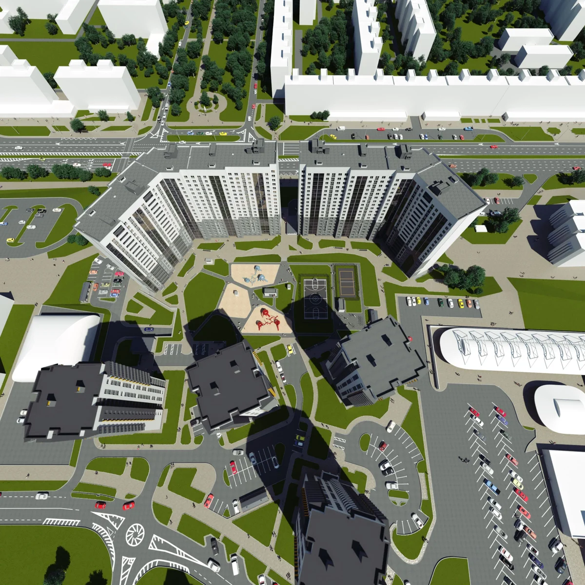 ЖК Гулливер — это не одна высотка, а целый жилой квартал, состоящий из шести зданий. Два из них — монолитные дома повышенного комфорта высотой в 19 этажей каждый, с закрытой двухуровневой подземной гараж-стоянкой. Остальные четыре здания будут возведены по технологии крупнопанельного строительства.