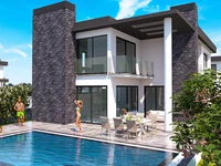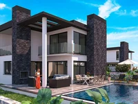 Дом расположен на частном участке и располагает собственным бассейном размером 4×8 м и просторным садом. Предусмотрена открытая парковка, а двухэтажная планировка продумана для комфортной семейной жизни. Внутреннее пространство включает просторную гостиную с камином и кухню открытой планировки. Кухня оборудована кварцевыми столешницами и глянцевыми фасадами шкафов. В интерьере используются керамическая плитка и паркет, а декоративные подвесные потолки добавляют пространству выразительности и современного стиля.