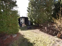 Ровный, озелененный участок с насаждениями. При въезде предусмотрены два парковочных места и хозпостройка. В пешей доступности — станция второй линии метро (около 10 минут) и автобусная остановка (около 5 минут).