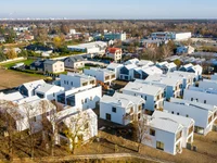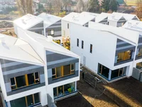 Дом находится в новом современном жилом комплексе на улице Cymbalistów, Ursynów. Дома привлекают своим интересным дизайном фасада, панорамными окнами и частными палисадниками.