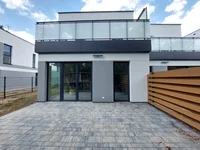 Elegancki dom (25) w zielonej części warszawskiej dzielnicy Białołęka. Dom w zabudowie bliźniaczej.