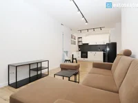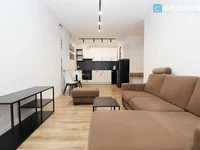 Квартира, предлагаемая в аренду, расположена на втором этаже здания, построенного в 2024 году. Площадь около 41 м2, состоит из: гостиной с кухней, спальни, прихожей и ванной комнаты. Интерьер меблирован - в гостиной диван-кровать со спальным местом, стол со стульями, тумба под телевизор и журнальный столик. Полная бытовая техника с посудомоечной машиной на кухне, открытой в комнату. Ванная комната оборудована стиральной машиной и душем. В спальне удобная кровать 160x200, шкаф и письменный стол. В квартире есть большой балкон - вход из гостиной и спальни. Квартира выходит на юг. Доступны 3-метровая кладовая и личное парковочное место в подземном гараже. Готовы к немедленному заселению.ФИЛЬМ: