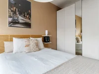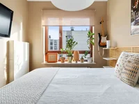 Локация тихая, окна выходят на внутреннюю часть комплекса, обеспечивая спокойствие. Квартира отлично связана с транспортной инфраструктурой: рядом автобусная остановка линии 165, на которой можно доехать до метро Wilanowska за 10 минут, а также петелька на ул. Bokserska с многочисленными маршрутами, включая прямой автобус 174 до Ronda ONZ и автобус 193 до метро Służew. Недалеко находится аэропорт Chopina, что удобно для путешественников.
