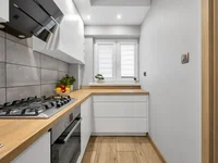 Полностью оборудованная, функциональная и просторная кухня с окном обеспечивает удобство в повседневном использовании.