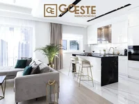 Кухня, столешница, стол и парапеты выполнены из 3-сантиметрового, стойкого гранита. Высококачественные приборы и оборудование RTV: новое, энергоэффективное оборудование с гарантией производителя, двухкомпонентная печь и даже капот, управляемый жестами и шлифовальными машинами для измельчения отходов в раковине. Установленные помещения делают жизнь проще и намного комфортнее - капот, управляемый жестами, значительно облегчает приготовление пищи, а стены можно мыть, не оставляя следов благодаря краске Flugger, поэтому покупатель легко сохранит чистоту. Напольное отопление в ванной и кухне делает использование более комфортным. Керамический стол, изготовленные на заказ шторы и мебель, изготовленные плотником меньшего размера, делают стандарт отделки имущества уникальным и уникальным.