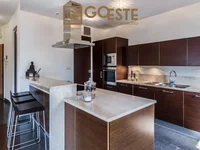 Полы выполнены из экзотических паркетных полов, а ванные комнаты украшены элегантным камнем, что подчеркивает престиж квартиры. По всему помещению спроектировано большое количество шкафов, что гарантирует функциональность и порядок.